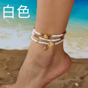 ヨーロッパとアメリカのトレンディな真珠とヒトデのアンクレットブレスレットファッションチェーンビーズジュエリーアンクレットビーチ旅行ギフト女性用