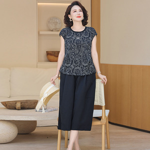 妈妈夏装2025新款时尚洋气中老年夏季短袖t恤女端庄大气上衣套装