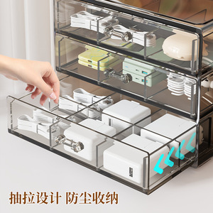 データケーブル収納ボックス携帯電話充電器家庭用大容量アクリル引き出し防塵仕分け分離ケーブルワインダー