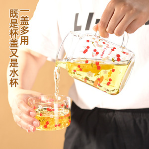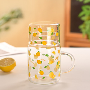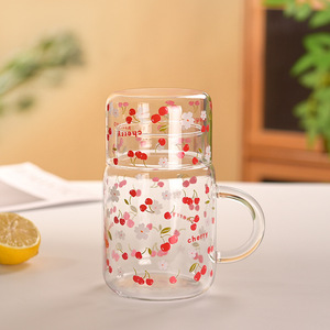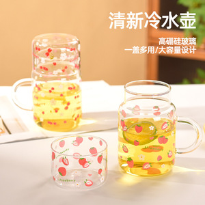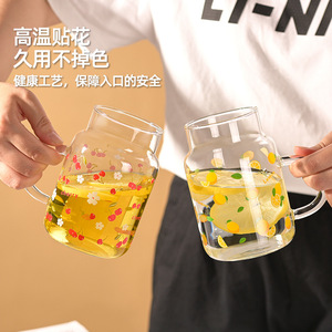 高颜值耐高温玻璃杯可爱奶茶水杯带把果汁杯子大容量ins风带盖
