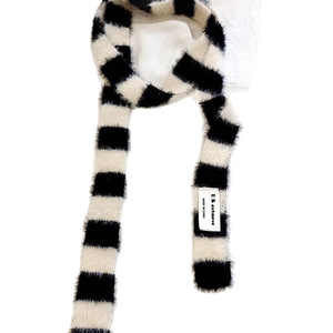 黑白条纹细窄长条毛绒围巾小众百搭y2k千禧风秋冬凹造型辣妹围脖