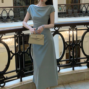 2025年【清雅美術学生】気質知的シンプルな斜め肩ドレスレディース夏ロング&ショートスカート