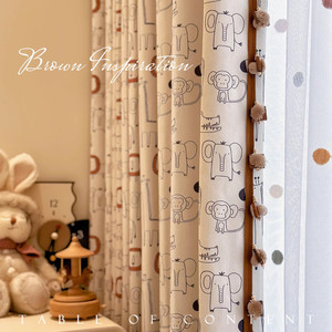 萌宠乐园 卡通ins奶油风儿童房遮光女孩男孩房雪尼尔印花卧室窗帘