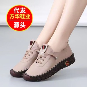 2025春 柔らかい底のマザーズシューズ、中高年向けの快適な革靴、履き心地の良いカジュアルな婦人靴、滑り止めシューズ