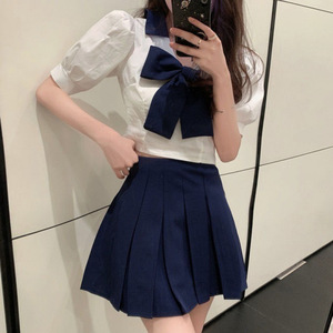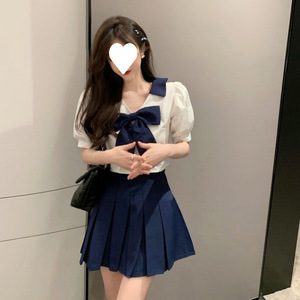 スーツスカート女性用 2025 夏新作日本人学生ショート万能トップハイウエストプリーツスカート 2 点セット