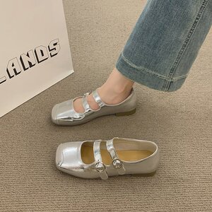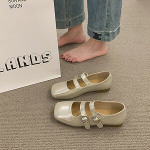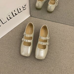 法式复古玛丽珍鞋女2025夏款方头气质平底鞋配裙子浅口芭蕾舞单鞋
