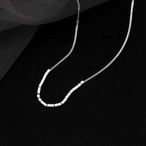 s925 スターリングシルバー小さな正方形ネックレス女性の夏のニッチデザインインシンプルなコールドスタイル幾何学的なブロークンシルバー鎖骨チェーン