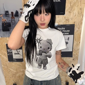 local aliens外星沙龙美式复古正肩短袖T恤卡通印花显瘦百搭半袖