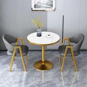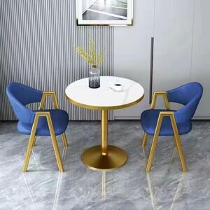 模造白大理石のテーブルトップ + ゴールデンレザーの椅子