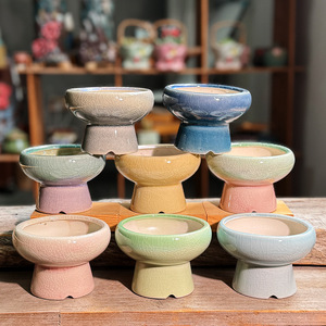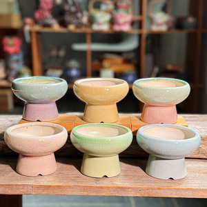 セラミックひび割れ多肉植物植木鉢、氷ひび割れ小清新容器、卓上グレードのインターネットセレブ鍋植木鉢、穴付き