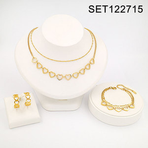 钛钢爱心环环相扣不锈钢锁骨链镀金百搭女套装不掉色桃心项饰耳饰