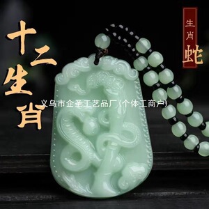 ライトヒスイ模造翡翠干支仏ペンダントネックレスセーターチェーン蛇年ペンダントペンダントジュエリー卸売