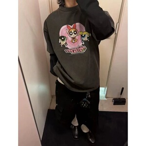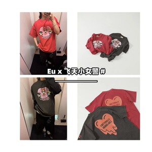 致敬童年#重磅水洗炒雪花 联名飞天小女警 溶解心复古水洗短袖T恤