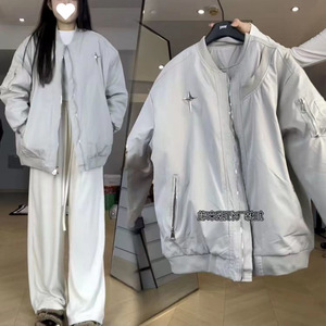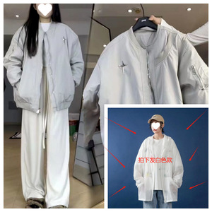 アメリカのハイストリート春と秋の新しいスタイルのボンバージャケット女性のトレンディなブランドカップル野球襟薄いコート女性