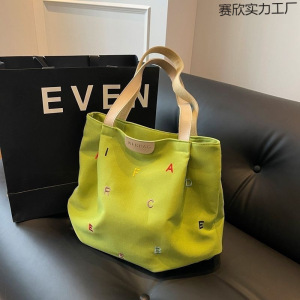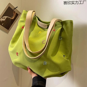 大容量キャンバスバッグレディース新しいトレンディな刺繍レターハンドバッグ小さな新鮮な学生ショルダートートバッグ