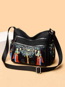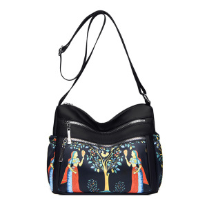 印花女士斜挎包大容量逛街背包简约通勤单肩包潮流防泼水尼龙布包
