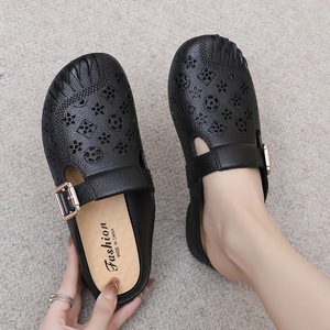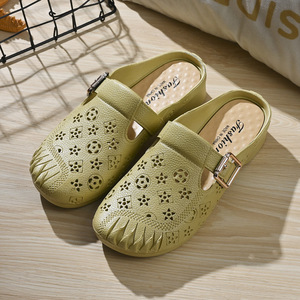 フラットヒール滑り止め中年母親包頭スリッパ包頭スリッパ模造革ミッドヒール下駄アウターウェア女性スリッパ卸売