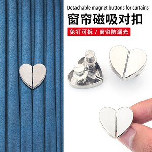 カーテン用マグネット式留め具、ハート型、取り外し可能、釘不要、光漏れ防止、目立たないマグネット式カーテン留め具