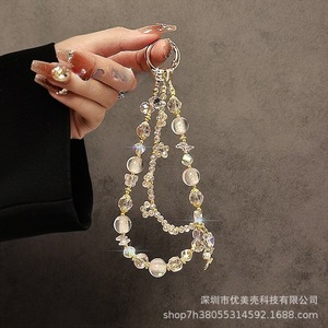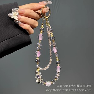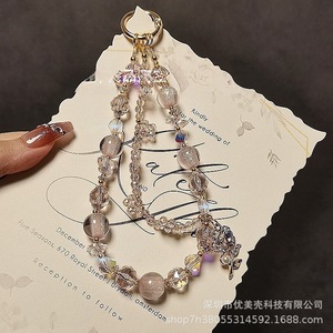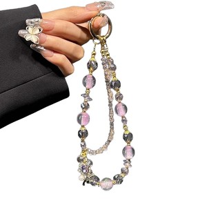 轻奢高级感水晶手机链时尚花朵吊坠串珠双链手机挂绳精品手提挂链