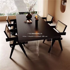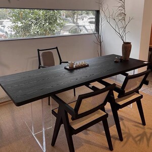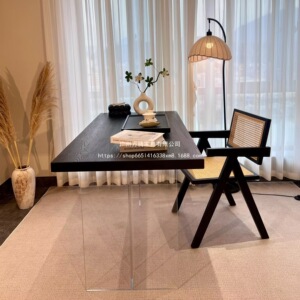 Wanteng 北欧スタイル無垢材ダイニングテーブルアクリル吊りテーブルホームレストランダイニングテーブルシンプルな長方形オフィス Wanteng