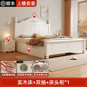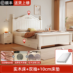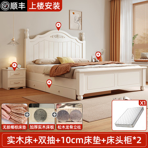 無垢材ベッド + ダブル引き出し + 10cmマットレス + ベッドサイドテーブル*2 【ご自宅への無料配送】