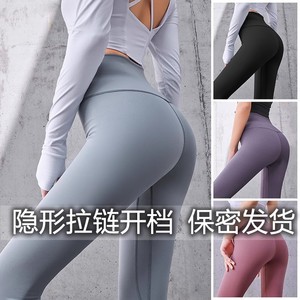 户外免脱鲨鱼皮打底裤双头隐形拉链打底裤高腰收腹显瘦瑜伽裤瞬奋