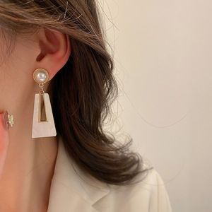 ヨーロッパとアメリカの誇張されたシルバー針幾何学イヤリング、台形デザインイヤリング、甘くてクールなスタイルのイヤリング、女性用卸売