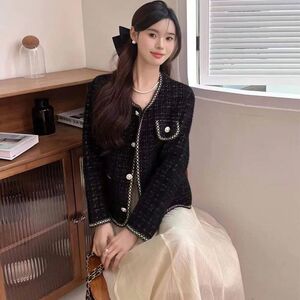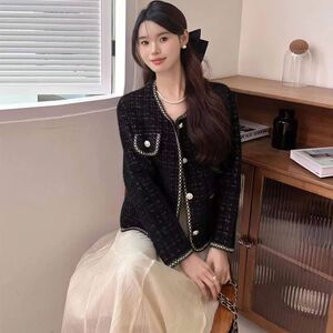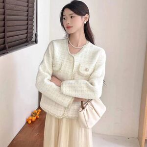 女性のためのレイジースタイルジャケット春と秋の新しいフレンチラウンドネックカーディガンデザインニッチルーズショートイミテーションミンクベルベットトップ