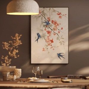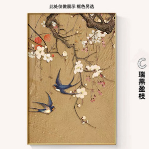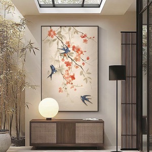 新中式入户玄关装饰画喜上眉梢中古风挂画过道走廊壁画油画