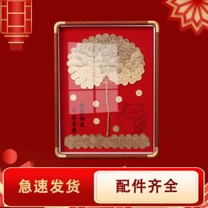 フォーチュンツリーコインフォトフレーム大型金のなる木テンプレートアクセサリーdiy五角形のお金新築祝いローズウッドカラー