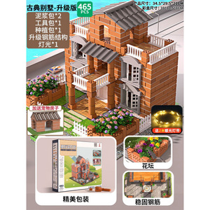 レンガ職人が家を建てる壁のおもちゃ新年の贈り物子供の建物手作りレンガ小屋ミニセメント