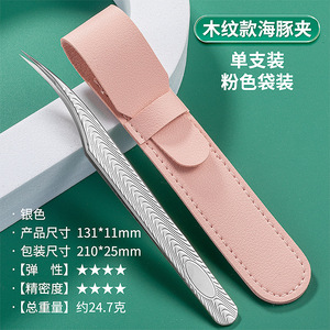 シルバーウォーターリップルドルフィンピンセット+ピンクレザーケース