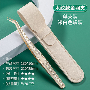 パールゴールドパターン - ゴールドフェザーピンセット + オフホワイトレザーケース