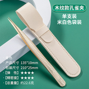 パールゴールドパターン-ピーコックピンセット+オフホワイトレザーケース