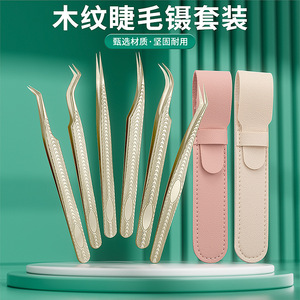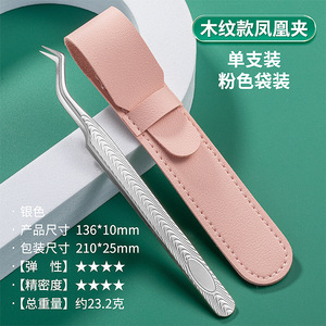 パールゴールド移植まつげピンセット、まつげピンセット、フラワーゴールドフェザークリップ、クイーンフェニックスクリップ、つけまつげピンセット、レザーケース