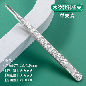 シルバーウォーターリップルピーコックピンセット+オフホワイトレザーケース