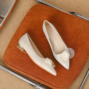 1966-76B 新しいカメリアフラットシューズ女性のデザインニッチ気質社交レディースパンプス白のウェディングドレス女性