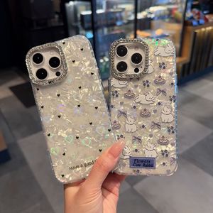 ドットダイヤモンドフレーム ハートシェル柄 iPhone17ケース対応 可愛いiPhone16promax カートゥーン13/11