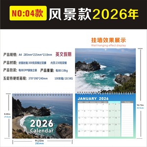 2026年新製品アメリカンホリデーA4英語壁掛けカレンダークロスボーダーアマゾンカレンダー大量在庫、大量、優れた価格