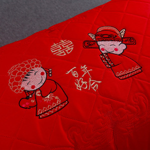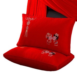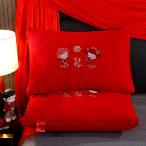 厂家直销婚庆枕头全棉大红枕芯羽丝绒结婚陪嫁成人喜庆红色刺绣