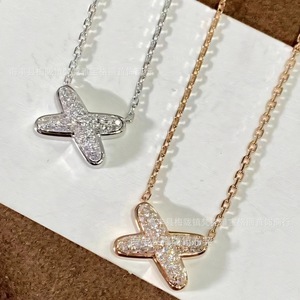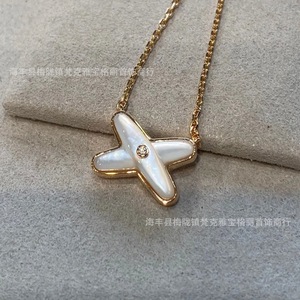 V Jinshangmei クロスネックレス レディース 18K ローズゴールドメッキ 鎖骨チェーン ホワイトマザーオブパール X字型ペンダント 工場直販