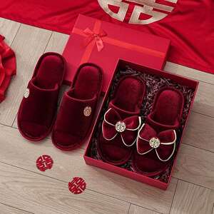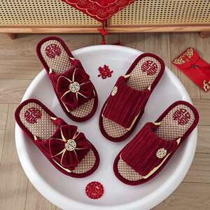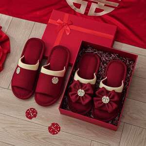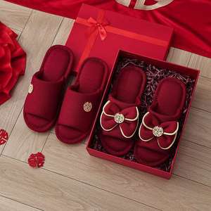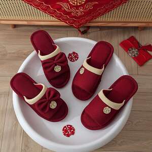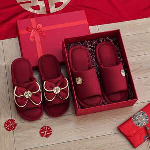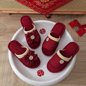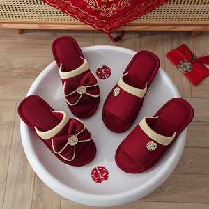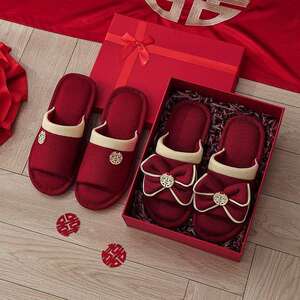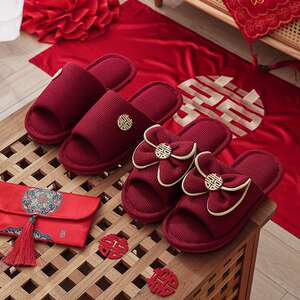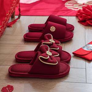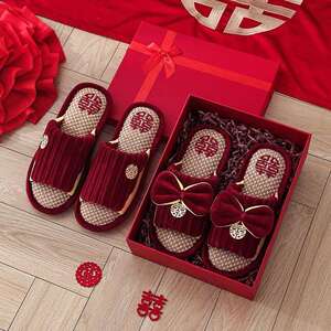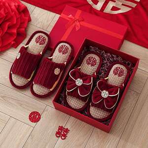 結婚式用スリッパ、お祝いの赤い新郎新婦、夏の結婚式、新婚夫婦、結婚式の部屋、持参金、結婚式の高級品