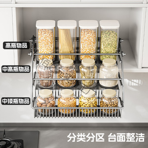 キッチンキャビネット伸縮トップキャビネット調味料バスケットウォールキャビネットリフティングバスケット収納ラック収納アップダウンプルタイプ