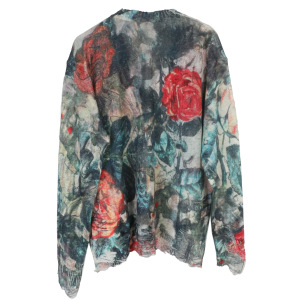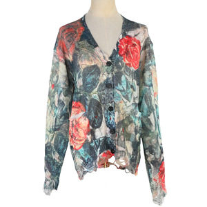 Zhao Lusi のボーイフレンドスタイル迷彩ローズプリントセーター韓国スタイルレトロフラワー V ネックニットカーディガン女性用