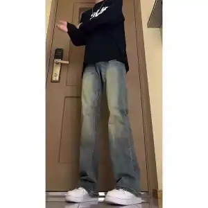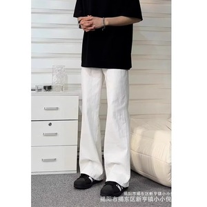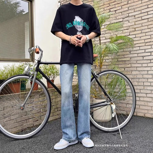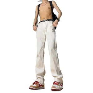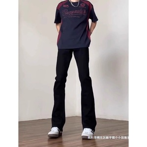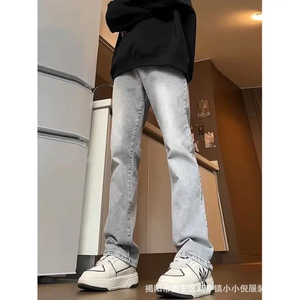 男性用マイクロフレアジーンズ 2025 新しいアメリカンハイストリートナローバージョンハンサムウェアパンツ柳の葉スモールソードストレートパンツ