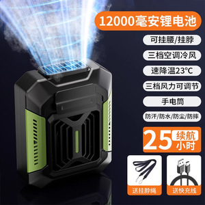 グリーンとブラック丨12000mAh [体性感覚冷却23]℃全身冷却照明/充電ツーインワンを備えた数秒でエアコン付きの服に変身】26時間使用可能。