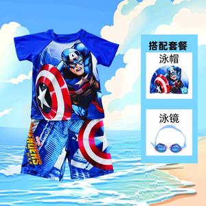 【キャプテン・アメリカ】スーツ+スイミングキャップ+スイミングゴーグル-120cm [推奨身長110-120cm]