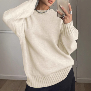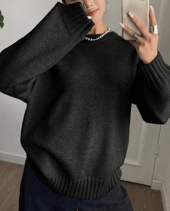 ヨーロッパとアメリカンスタイルのクロスボーダー独立系秋と冬の新しい女性用長袖セーター無地ラウンドネックカジュアルプルオーバーセーター女性用
