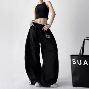 ヨーロッパとアメリカの作業服パンツ女性の夏アメリカンスポーツパンツジャズヒップホップヒップホップスリムワイドレッグヒップホップシミターパンツ