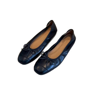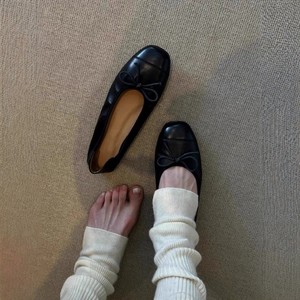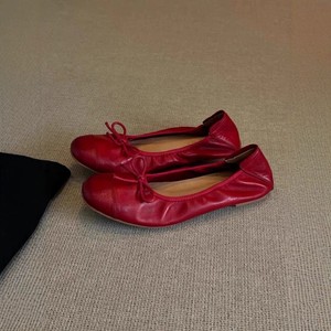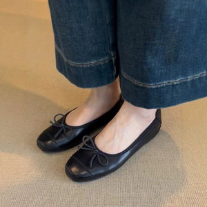 シープスキンバージョン~女性用の非常に柔らかいバレエシューズ、ラウンドトゥの浅い口のフラットシューズ、フレンチイブニングスタイルのリボン付き本革おばあちゃんの靴